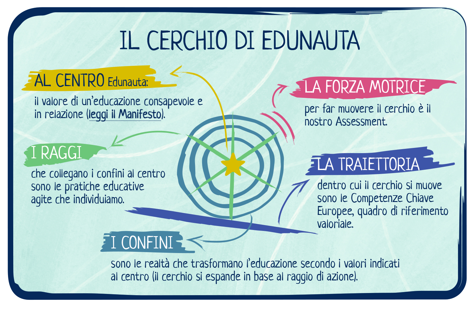 ● mettere al centro una missione che sostiene chi educa nel realizzare il proprio potenziale per raggiungere la massa critica necessaria a diffondere una nuova consapevolezza educativa collettiva;